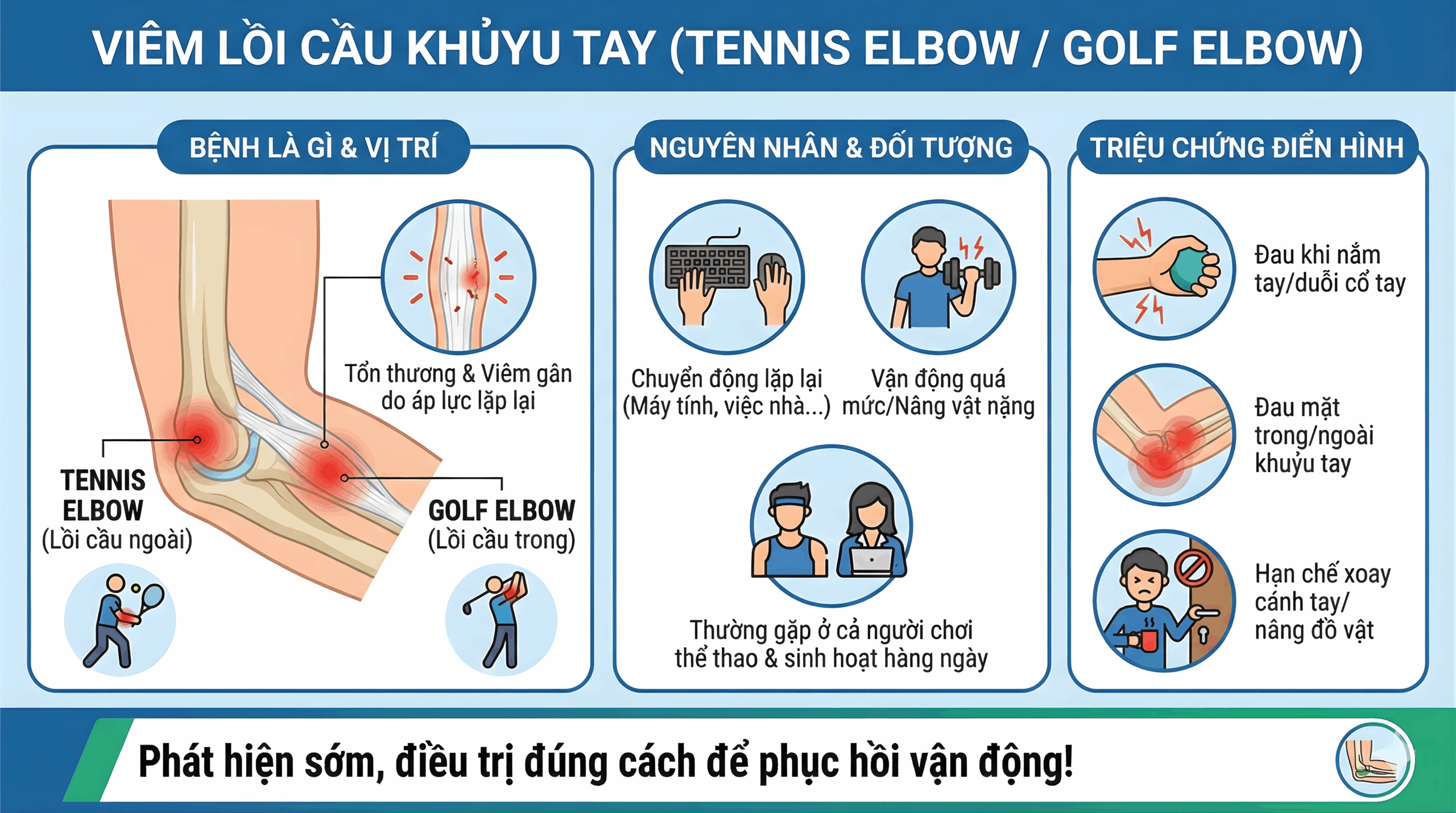 Viêm lồi cầu xương cánh tay là bệnh lý xảy ra khi các gân xung quanh khuỷu tay chịu áp lực lặp đi lặp lại, dẫn đến những điểm rách nhỏ và gây ra tình trạng viêm.